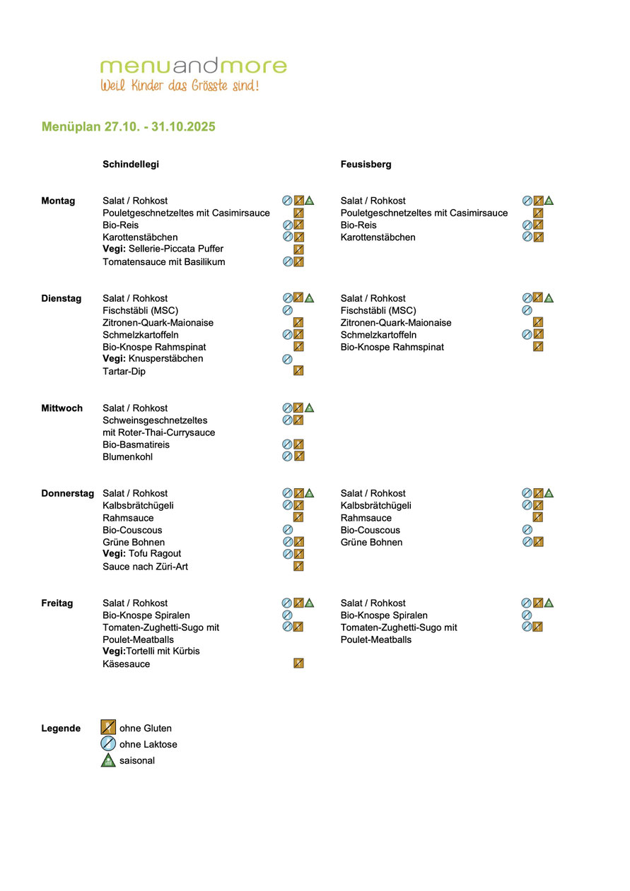 Mittwoch - nur in Schindellegi (Kinder aus Feusisberg werden mittels Schulbus nach Schindellegi transportiert)